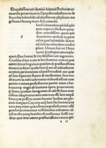 In 4to ; 214x155 mm. Legatura in piena pergamena. 32 cartes, la dernière en blanc. Segnatura : a-h4, 29 righe, carattere romano, marginalia stampati, spazi iniziali da 4 a 8 righe con guide stampate. Bel exemplaire.