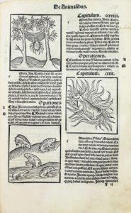 Folio mm 295x203 ; Reliure contemporaine en vélin rigide, titre manuscrit au dos ; page de titre encadrée, 3 gravures sur bois à pleine page, plus de 1000 illustrations dans le texte représentant des plantes, des animaux, des monstres, des pierres précieuses, des scènes de vie. Déchirure réparée à la p. 239. Bel exemplaire, croustillant, très bien impressionné, avec un signe occasionnel d'humidité.