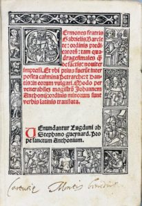 DA BARLETTA Sermones fratris Gabrielis Barelete. BARLETTA, Gabriele ; da. Sermones fratris Gabrielis Barelete.Lyon, 3 dicembre 1507.