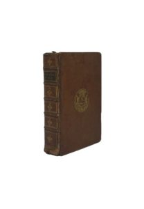 In-8vo. Légende coeva alle armi, vitello color avana, armi al centro dei piatti, dorso a nervi con fregi in oro, tassello con il titolo in marocchino verde. Pagine [16], 382, con titolo ; [2], 270, [2], 40, 2 bianche. Frontespizio figurato inciso, 16 tavole a piena pagina. Difetti alla legatura, buon esemplare.