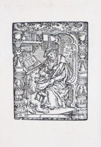 16mo, 145X102 mm ; reliure demi-cuir et papier marbré, titre et décorations dorés au dos, tranches jaspées. Pp. [16], c.-à-d. 240 238, [34], Coll. : A8 A-R8. Page de titre dans un cadre architectural avec des chérubins ailés et des figures mythiques, en bas Cléopâtre ; belle marque d'imprimeur en A8V représentant Saint Jérôme assis devant un lion, 2 grandes Initiales illustrées, caractères ronds et italiques, références dans les marges. Nom de l'auteur manuscrit sur la page de titre. Très bon état.