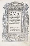 Belle et bonne édition. L'opéra est attribué à Ammonio d'Alessandria qui, au IIe siècle, propose une synthèse des évangiles en individualisant les branches parallèles : il met en place une armonie, ou consonance, des quatre évangiles, en prenant pour base l'évangile de Matthieu et en intégrant les parties manquantes avec les branches prescrites par les autres évangiles. Le texte qui nous occupe est la version latine du Vescovo de Capoue Vittore du Ve siècle : la consultation est facilitée par les références aux marges. Cette édition est magnifiquement illustrée d'un Frontespizio architettonico avec Cléopâtre à la base et diverses figures allégoriques, d'une marque éditoriale à la première page raffigurant San Gerolamo nello studio seduto di fronte al leone ; infine due grandiose iniziali, una con il ritratto di San Marco, l'altra con San Giovanni in estasi insieme all'aquila.