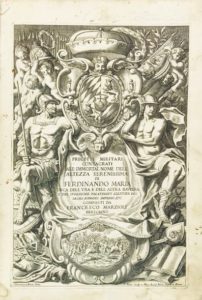 Folio, 385x270 mm. Legatura coeva in p. pergamena, dorso a 6 nervi ; cc. 4 nn. inclusi occhietto, front. dedica e ritratto, pp. 166, cc. 4 non numerate inclusi indice, colophon, ult. bianca. Bel exemplaire.