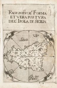 Edizione originale figurata. Cet ouvrage exceptionnel contient des informations géographiques, scientifiques et mathématiques. La partie géografique constitue le corpus principal de l'ouvrage : les 28 cartes raffigurant les principales îles de la Méditerranée, présentées selon une forme circulaire inhabituelle, ont été finement intégrées par Michelangelo Marelli. Ogni carta geografica è racchiusa entro una cornice ornamentale, e mostra le linee dei venti : il titolo, nella parte superiore, è espresso con la formula Ragionevol' Forma et vera postura dell'Isola. Mortimer 184 ; Olschki 4539 ; Cockle 548 ; Shirley T.FRR-1a. - Collection Nordenskiold I, p.156 no.73 ; Stylianou 81, Navari 33 ; Zacharaki, Scutari 1499, 1003-1518,1022 ; King, pp. 62, 3.