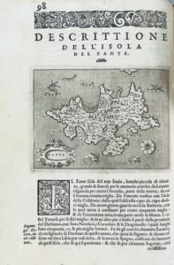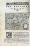 Terza edizione molto accresciuta, con 19 mappe non incluse nella prima edizione e con due mappe aggiuntive rispetto alla seconda edizione del 1572 : "Istria Descrittione" e "Descrittione d'Elandia, Isola de Gotti". Le Nouveau Monde est présenté à la page 157 : nous trouvons la pianta della città e dell'isola di Temistitan", la "Descrittione dell'Isola et terra di Santa Croce, overo Mondo Nuouo", qui représente l'intero continent nord-américain, puis nous avons les descriptions des isole di Spagnvola, Cuba, Iamaica "hora detta di S. Iacopo", S. Lorenzo, et "S. Giovanni" ou "Borichen". Les îles du Pacifique sont raffigurées dans le "Taprobana" et dans les "Moluques". L'opéra comprend deux cartes du monde : la "Descrittione del Mappamondo" et le "Discorso Intorno Alla Carta da Navigare", une splendide carte marine. Adams P-1906 ; Alden and Landis 590/54 ; BMC Italian, p.534 ; Burden The Mapping of America 42 ; JCB [3] I:324 ; Sabin 64151 ; Shirley The Mapping of the World, pp. 127-128. Phillips, 90.
