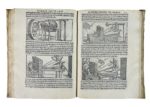 8vo. 200x146 mm. Vélin rigide postérieur réassemblé. Feuillets [8], 167, [1, avec la marque de l'imprimeur]. Titre encadré d'une riche bordure gravée sur bois avec le triomphe de Venise en haut et le lion de San Marco en bas, entouré d'alambics, de cloches, de fours et d'autres outils, de calottes dans des vignettes gravées sur bois, 84 illustrations gravées sur bois très intéressantes dans le texte représentant des outils et des méthodes pour le traitement des métaux, pour la production de verre, des cloches pour la distillation et autres, avec des fours et des alambics. Note de propriété sur la page de titre, signature effacée sur le deuxième feuillet, bel exemplaire frais.