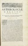 Edizione originale figurata. Dans cet opéra, le professeur de mathématiques du Collège Royal (1583-1656), riafferma le statut de l'astrologie en tant que science en controverse par rapport à son époque. Thorndike : "C'est presque la dernière tentative à grande échelle pour défendre, réhabiliter et reconstruire l'astrologie judiciaire et généthliaque... une œuvre monumentale". Opposé à Gallileo et à Cartesio, Morin a écrit les 26 livres de l'Astrologia Gallica mais n'a pas réussi à les faire publier. Les premiers livres donnent la base théorique de son travail du point de vue théologique, tandis que les livres suivants traitent de l'astrologie natale, judiciaire, mondaine, électronique et météorologique. Caillet 7784 ; DSB IX, 527-28 ; Thorndike VII, pages 477-91.