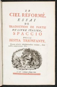 BRUNO. Le ciel réformé. BRUNO, Giordano. Le ciel réformé. Essai de traduction de partie du livre italien, Spaccio della Bestia Trionfante. [Paris], 1750. L'an 1000 700 50