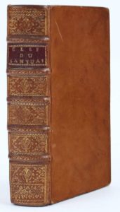 3 parties dans un petit volume 8vo. 145x85 mm. Reliure de l'époque en plein cuir, titre et ornements dorés sur le dos. Boite en maroquin récent. Pages [34], 531, [31], 30. 3 pages de titre. Ex-libris armorié à l'intérieur de la couverture. Un bel exemplaire.