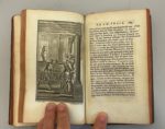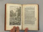 In 12mo. Legatura coeva in pelle bruna, dorso a nervi con fregi in oro. Antiporta, Front. in rosso e nero con vignetta, pagine [2], XXIV, 222, 4 bianche. Testatina e Culs-de-lampe incisi in rame. En total 14 tavole incise a piena pagina. Tracce di usura alla legatura, internamente buon esemplare.