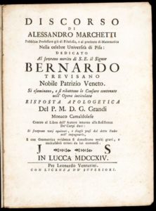 Mathematics. GALILEO-MARCHETTI. Discorso. MARCHETTI, Alessandro. Discours. Lucca, Venturini, 1714