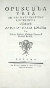 Mathematics. LORGNA. Opuscula Tria ad Res Mathematicas pertinentia. LORGNA, Antonio Mario. Opuscula Tria ad Res Mathematicas pertinentia. Vérone, Ramanzini, 1767.