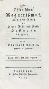 Magnetism. GMELIN. Ueber Thierischen Magnetismus. GMELIN, Eberhard. Ueber Thierischen Magnetismus. In einem Brief an Herrn Geheimen Rath Hoffmann in Mainz. Tübingen, J.F. Heerbrandt, 1787.
