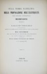 Rara dissertation, che costituisce il primo lavoro scientifico di rilievo del grande fisico piemontese (Livorno Ferraris, 1847 - Torino, 1897), autore di ricerche fondamentali in campo elettrotecnico e fisico-teorico. C'est à lui que l'on doit la découverte du camp magnétique rotatif, appelé ensuite "camp Ferraris" ; et un grand nombre d'expériences et d'observations sur les machines à courant continu et alternatif, les moteurs électriques, les systèmes de distribution, etc. Morra, G. Ferraris, Torino 1897, pp. 11-15 : "Lavoro di grande mole.... Esso dimostrò che nei tre anni trascorsi dalla laurea, la mente del Ferraris s'era diretta allo studio delle questioni più ardue... antiveggendo i postulati della teoria elettromagnetica ormai indiscussa, fa notare essere impossibile non veder provato come nella propagazione degli stati elettrici intervenga quel medesimo etere a cui si attribuisce la propagazione della luce e del calore raggiante".