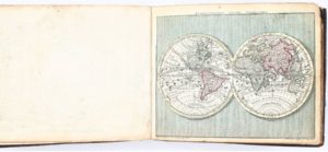 8vo mm. 115x150 mm. Reliure de l'époque en veau à froid. Page de titre et frontispice illustré gravés, index, 72 pages et 43 cartes contemporaines en couleurs. Légères traces d'usure, bon exemplaire.