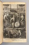 2 Parti in un volume in-folio. Legatura originale olandese, piena pergamena con impressioni a secco. Antiporta, Frontespizio, 2 fogli non numerati, Ritratto fuori testo, pagine 208, 258, 9 pagine non numerate in fine, l'ultima con indice delle tavole. Testo su due colonne. Carta geografica della Cina ripiegata fuori testo, 34 tavole su doppia pagina, 110 incisioni a mezza pagina nel testo. Bon exemplaire.