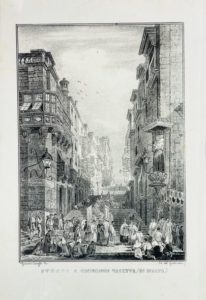 Bel lotto di cinque litografie illustranti strade e il porto di La Valletta (visto dal mare e dalla Marina), brulicanti di vita e di attività commerciali e religiose. Sur les images, à droite, l'indication "Lit. del Guttemberg". Furono inserite nell'opera di Clément Pellé, pubbllicata a Napoli dalla Tipografia e Litografia del Guttemberg nel 1841.