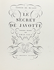 1947. — LIBRO : — (BIBLIOFILIA-ARTE).— MUSSET, ALFRED DE; GRAU-SALA (ILUSTR.) : — LE SECRET DE JAVOTTE.— Paris : Les Heures Claires, 1947. 4º menor. 118 p. + 4 h. Prufus. ilustrado con viñetas y 8 lám. grabadas en punta seca de Grau...