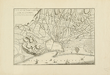 1711. — GRABADO : — (BARCELONA).— FER, N. DE : — LE PLAN DE BARCELONNE ET DES SES ENVIRONS TRES EXACTEMENT LEVÉS SUR LE LIEUX EN 1711. Grabado calcográfico firmado en plancha por A. Coquart, 40 x 55 cm huella, 53 x 75 cm papel. Arrugas y...