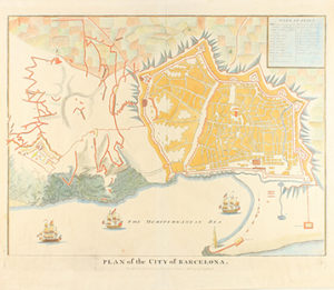 1744-47. — GRABADO : — (BARCELONA).— BASIRE, I.; DE RAPIN, P.; TINDAL N. : — PLAN OF THE CITY OF BARCELONA for Mr. Tindal´s continuation of Mr. Rapin´s history.— Mapa grabado al cobre en 39 x 48,5 cm huella, y 43 x 51 papel. Coloreado....