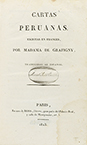 1823. — LIBRO : — (HISTORIA PERÚ).— GRAFIGNY, Mme : — CARTAS PERUANAS. Escritas en frances, por...— Paris : En casa de Rosa, librero, 1823. 8º menor. 306 p. + 8 p. Antiguo cerco de humedad en la punta inferior de las primeras p. Notas al pie.