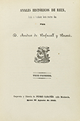 1845. — LIBRO : — (HISTORIA-REUS).— BOFARULL Y BROCA, ANDRES DE : — ANALES HISTORICOS DE REUS, DESDE SU FUNDACION HASTA NUESTROS DIAS.— Reus : Imp. y Libr. Pedro Sabater, 1845. 2 vol. en 8º mayor. I : 256 p. + 2 h. II : 4 h. + 344 p. Dos...