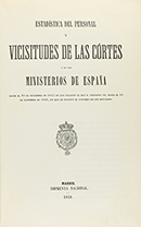 1858. — LIBRO : — (ESTADÍSTICA-POLÍTICA).— ESTADÍSTICA DEL PERSONAL Y VICISITUDES DE LAS CÓRTES Y DE LOS MINISTERIOS DE ESPAÑA DESDE EL 29 DE SETIEMBRE DE 1833 EN QUE FALLECIÓ EL REY D. FERNANDO VII, HASTA EL 11 DE SETIEMBRE DE 1858, EN...