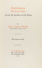 1909. — LIBRO : — (BIOGRAFÍA-HISTORIA).— MacNUTT, FRANCIS AUGUSTUS : — BARTHOLOMEW DE LAS CASAS. HIS LIFE, HIS APOSTOLATE, AND HIS WRITINGS.— New Yok- London : F. P. Putnam´s Sons, 1909. 4º menor. XXXVIII + 472 p. + 2 h. Ilustr. con...