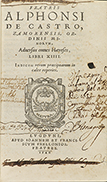 1546. — LIBRO : — (APOLOGÉTICA).— CASTRO, ALPHONSI DE : — ORDINIS MINORUM, ADVERSUS OMNES HAERESES.— Lugduni : Apud. Ioannem et Franciscum Frellonios fratres, 1546. 8º menor. 8 h. + 882 p. + 15 h. Anotaciones manuscritas en la portada.
