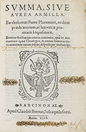 1566. — LIBRO : — (HUMANIDADES).— FUMI PLACENTINI, BARTHOLOMAEI : — SUMMA, SIVE AUREA ARMILLA.— Barcinonae : Apud Claudiu[m] Bornat, 1566. 8º menor. 441 fol. + 4 h.