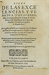 1595. — LIBRO : — (HAGIOGRAFÍA).— ESTELLA, DIEGO DE : — LIBRO DE LAS EXCELENCIAS, Y VIDA DE S. IUAN EVANTELISTA.— Valencia : herederos de Iuan Navarrao, 1595. 8º menor. 12 h. + 756 p.