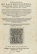 1598. — LIBRO : — (HUMANIDADES).— RUEGO, MARTIN : — PURGATORIO DE LA CONSCIENCIA, LLAMADO POR OTRO NOMBRE : SALVACION DEL ALMA.— Burgos : Imp. Philippe de Iunta, por Iuan Baptista Varesio, 1598. Dos partes enc. en un vol. en 8º mayor. 16...