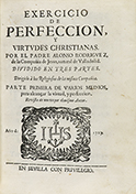 1727. — LIBRO : — (EJERCIOS ESPIRITUALES).— RODRIGUEZ, ALONSO : — EXERCICIO DE PERFECCION, VIRTUDES CHRISTIANA.— Sevilla : s. imp., 1727. 8º mayor. 20 h. inclusive retrato dibujado y grabado por Cornejo y Palomino + 652 p. + 29 h. de índices.