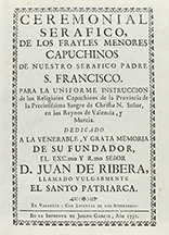 1731. — LIBRO : — (RELIGIÓN-VALENCIA-MURCIA).— CEREMONIAL SERAFICO, DE LOS FRAYLES MENORES CAPUCHINOS DE NUESTRO SERAFICO PADRE S. FRANCISCO. PARA LA UNIFORME INSTRUCCION DE LOS RELIGIOSOS CAPUCHINOS... EN LOS REYNOS DE VALENCIA, Y MURCIA.—...