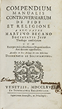 1765. — LIBRO : — (RELIGIÓN).— BECANO, MARTINO : — COMPENDIUM MANUALIS CONTROVERIARUM DE FIDE ET RELIGIONE.— Venetiis : Typ. Balleoniana, 1765. 8º menor. XX p. + 409. Cabeceras y marca tipográfica en la portada xilografiadas. Enc....