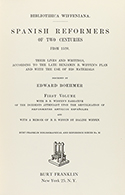 ca. 3 vol. en 4º menor. I : XV + 216 p. II : XI + 374 p. III : 4 h. + 193 p. + 1 h. Tres vol. en tela edit., algo sucia. Biblioteca Wilfeniana. Reproduce la obra que se publicó por primera vez entre 1874 y 1904. Estudio sobre la vida y escritos de los primeros reformistas españoles.
