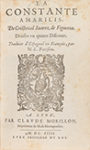 1614. — LIBRO : — (LITERATURA).— SUAREZ DE FIGUEROA, CHRISTOVAL : — LA CONSTANTE AMARILIS... EN QUATRE DISCOURS. TRADUITE E L´ESPAGNOL EN FRANÇOIS PAR N. L. PARISIEN.— Lyon : Clau de Morillon Imprimeur de M. de Montpensier, 1614. 8º...