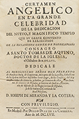 1657. — LIBRO : — (LITERATURA).— MIRANDA Y LA COTERA, IOSEPH : — CERTAMEN ANGELICO EN LA GRANDE CELEBRIDAD DE LA DEDICACION DEL NUEVO, Y MAGNIFICO TEMPLO...— Madrid : Diego Diaz de la Carrera, 1657. 8º mayor. 28 h. + 204 fol.