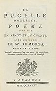 1779. — LIBRO : — (LITERATURA).— MORZA, Mª DE : — LA PUCELLE D´ORLÉANS, POËME DIVISÉ EN VINGT-ET-UN CHANTS, AVEC LES NOTES DE...— Londres : s.imp., 1779. 8º. XVI + 365 p. Enc. en pasta española, tejuelo. Cajo anterior semisesgado y...