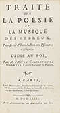 1781. — LIBRO : — (LITERATURA HEBREA).— CONTANT DE LA MOLETTE, L´ABBÉ DU : — TRAITÉ SUR LA POÉSIE ET LA MUSIQUE DES HÉBREUX, POUR SERVIR D´INTRODUCTION AUX PSEAUMES EXPLIQUÉS.— Paris : Chez Moutard, 1781. 8º. 2 h. + 251 p. Enc. en...