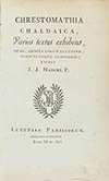 1803. — LIBRO : — (LITERATURA HEBREA).— CHRESTOMATHIA CHALDAICA, VARIOS TEXTUS EXHIBENS, QUOS, ADDITA EORUM LECTIONE, SUBJUNCTORQUE GLOSSARIO.— Lutetiae Parisiorum : J. J. Marcel P., 1803. 8º mayor. 2 h. + 87 p. (las pp. 25 a 32 están...