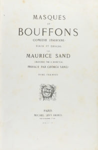 1860. — LIBRO : — (LITERATURA).— SAND, MAURICE : — MASQUES ET BOUFFONS (Comédie italienne). Texte et Dessins par...— Paris : Michel Lévi Freres, 1860. 2 vol. en 4º. I : VIII + 356 p. + 2 h. + 25 lám. II : 2 h. + 384 p. + 25 lám.