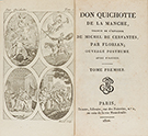 1810. — LIBRO : — (CERVANTINA).— FLORIAN (trad.); CERVANTES, MICHEL DE : — DON QUICHOTTE DE LA MANCHE. Paris : Libr. Briand, 1810. 6 vol. en 12º. I : frontis grabado + 2 h. + 229 p. y 4 grabados. II : 2 h. + 232 p. y 4 grabados. III : 2 h. +...