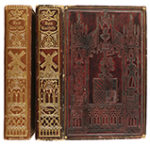Enc. en plena piel con hierros secos en un vol y dorados en el otro, de decoración tipo catedral, ambos con hilos dorados, cantos y cejas, lomeras cuajadas, cortes dorados, firmadas por SIMIER. R. DU ROI.