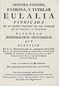 1779. — LIBRO : — (BARCELONA-PATRONA).— BORIA Y DE LLINÁS, DOMINGO IGNACIO : — NUESTRA OAYSANA, PATRONA, Y TUTELAR EULALIA VINDICADA EN LA MEJOR PORCION DE LAS FLORIAS DE SU PASION, Y TRIUMFO. DISCURSO APOLOGETICO HISTORICO...— Barcelona :...