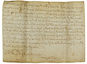 1232.— MANUSCRITO : — (PERGAMINO-GIRONA).— DOCUMENTO NOTARIAL REFERENTE A UNA HERENCIA.— Texto manuscrito en latín. 11,5 x 15,5 cm. Maria Segarra menciona como heredera a su hija Ermessenda. Signum notarial. [Girona], 1232.