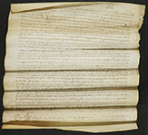 1344. — MANUSCRITO : — (PERGAMINO-GIRONA).— DOCUMENTO NOTARIAL MANUSCRITO POSIBLEMENTE RELACIONADO A UNA DONACIÓN O DOTE DE LA FAMÍLIA MASCORD. Manuscrito en latín en bonita caligrafía gótica, capital decorada. 39 x 30 cm. documento...