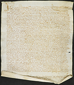1561. — MANUSCRITO : — (PERGAMINO-GIRONA).— DOCUMENTO TESTAMENTAL DE GABRIEL MASCORT.— Texto en latín, inicial decorada. 34 x 29 cm.