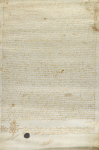 1561. — MANUSCRITO : — (PERGAMINO-GIRONA).— DOCUMENTO NOTARIAL MANUSCRITO REFERENTE A UNA DONACIÓN EN LA PARROCHIA DE PALANDOLO [PALOL].— Manuscrito en latín. 43 x 29 cm.