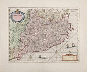 1630 ca.— MAPA : — (MAPA-CATALUNYA).— BLAEU, WILLEM : .— CATALONIA.— Ámsterdam, 1635. Plancha 38 x 50 cm, papel 55 x 63,5 cm.